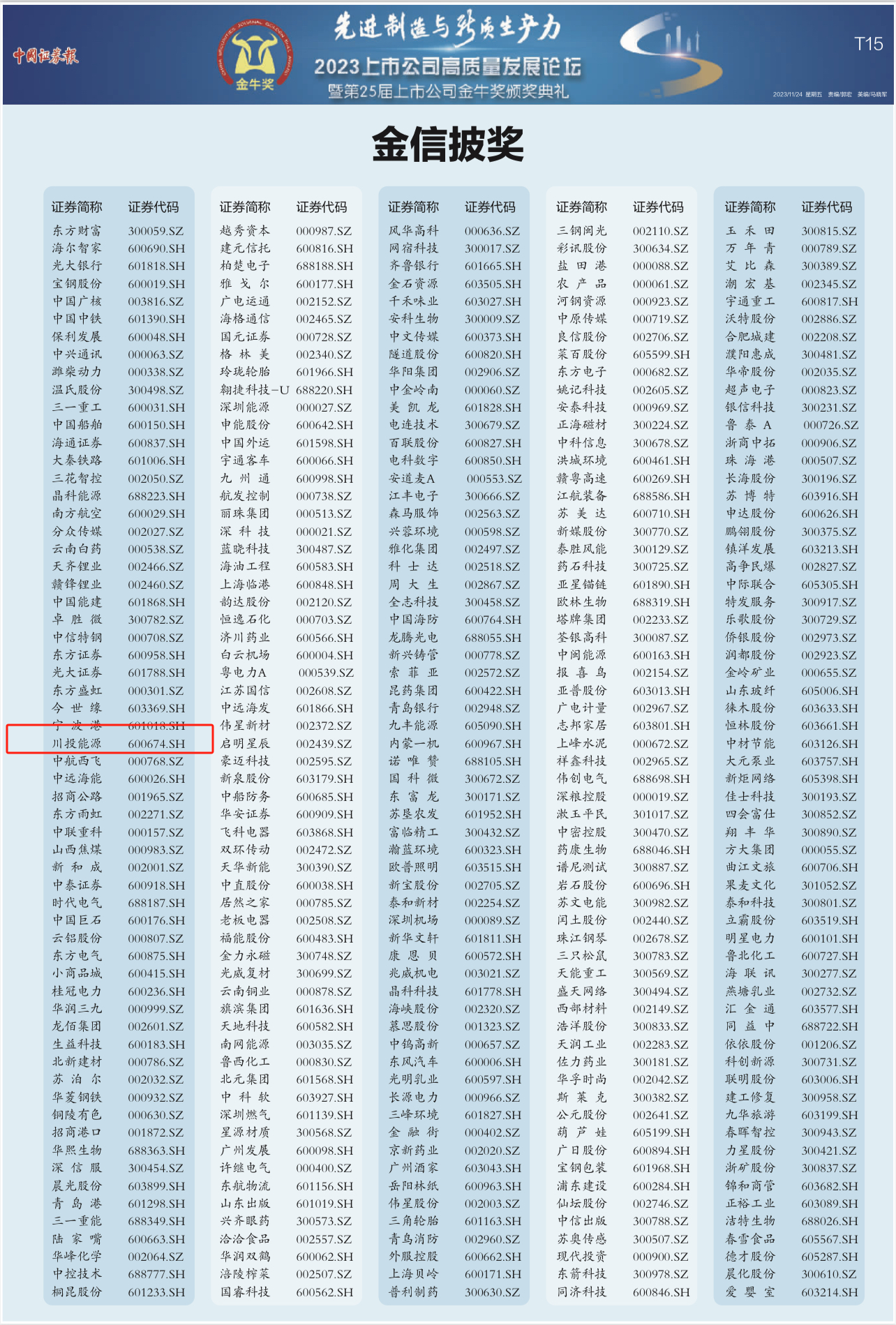 11月24日,,,,由中国证券报主理的“第二十五届上市公司金牛奖”榜单揭晓,,,,bm11222宝马娱乐网站能源依附稳健增添的业绩、一直提升的综合实力和高质量的信息披露,,,,荣获“2022年度金信披奖”。。。