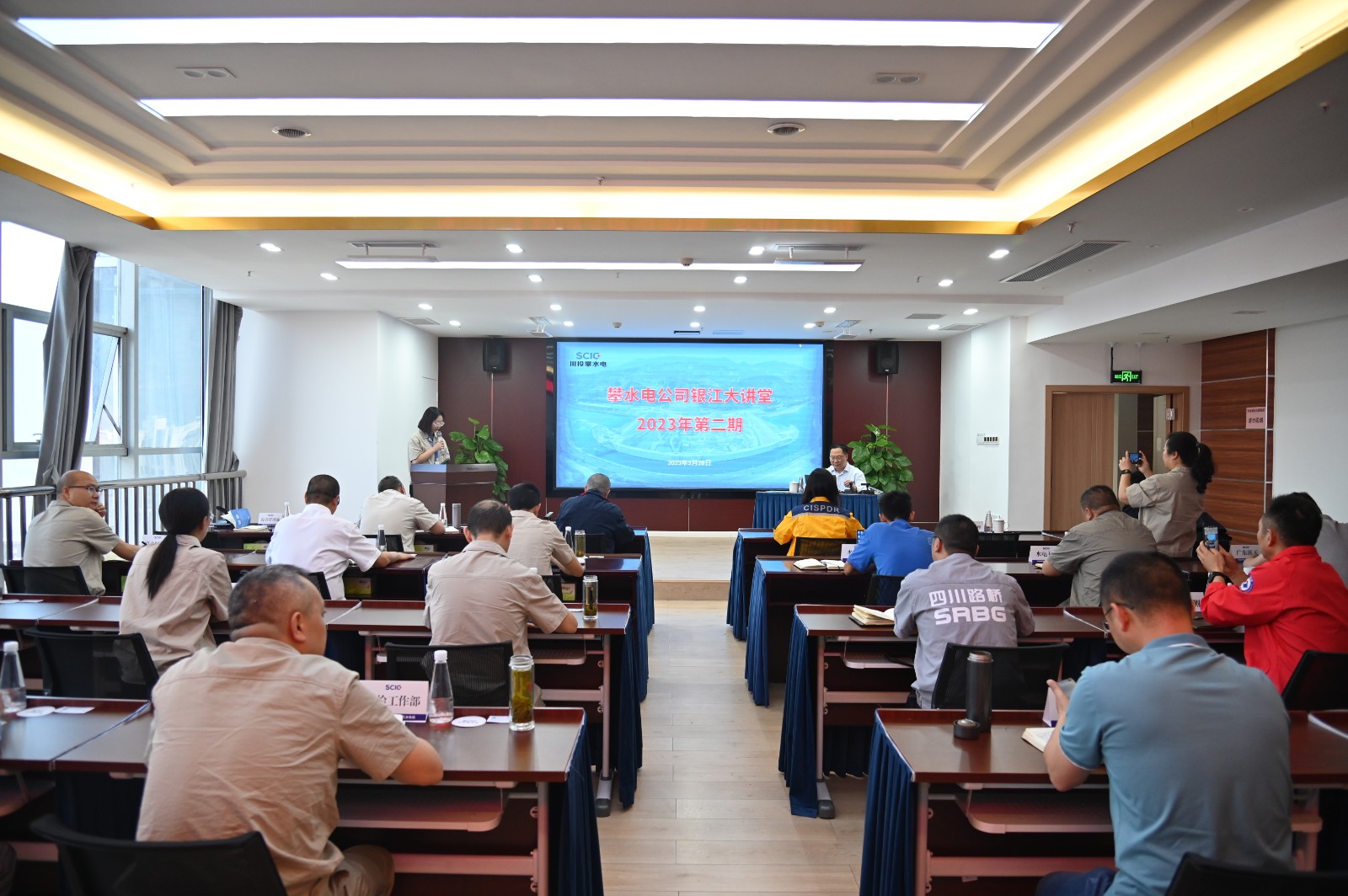 在银江水电站大坝基础固结灌浆周全推进,,建基面即将所有笼罩之际,,公司约请长江地球物理探测(武汉)有限公司副总工程师、银江水电站物探中心项目司理、教授级高级工程师蔡加兴,,在银江大课堂上给公司各部分及各参建单位,,作了题为《物探检测要领手艺与应用》的手艺交流课,,公司向导、各部分及各参建单位相关职员共30余人加入。。
