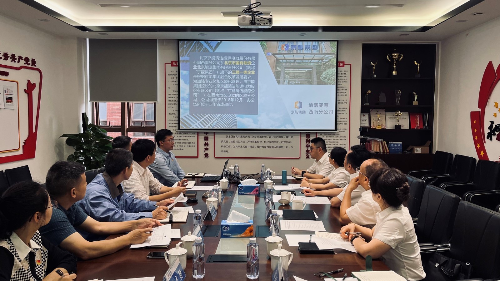 杨涛体现,,,,,此次调研的主要目的旨在对标偕行业同类型先进企业,,,,,学习借鉴京能清洁能源西南公司在党建事情、机构设置、运营机制、谋划治理、项目生长、人才步队建设、效劳包管等多方面的乐成履历,,,,,起劲完善公司法人治理结构,,,,,助力企业提质增效,,,,,周全提升公司高质量生长。。 。同时也希望通过交流学习的时机追求与京能清洁能源西南公司的相助时机,,,,,实现资源共享、相助共赢。。 。