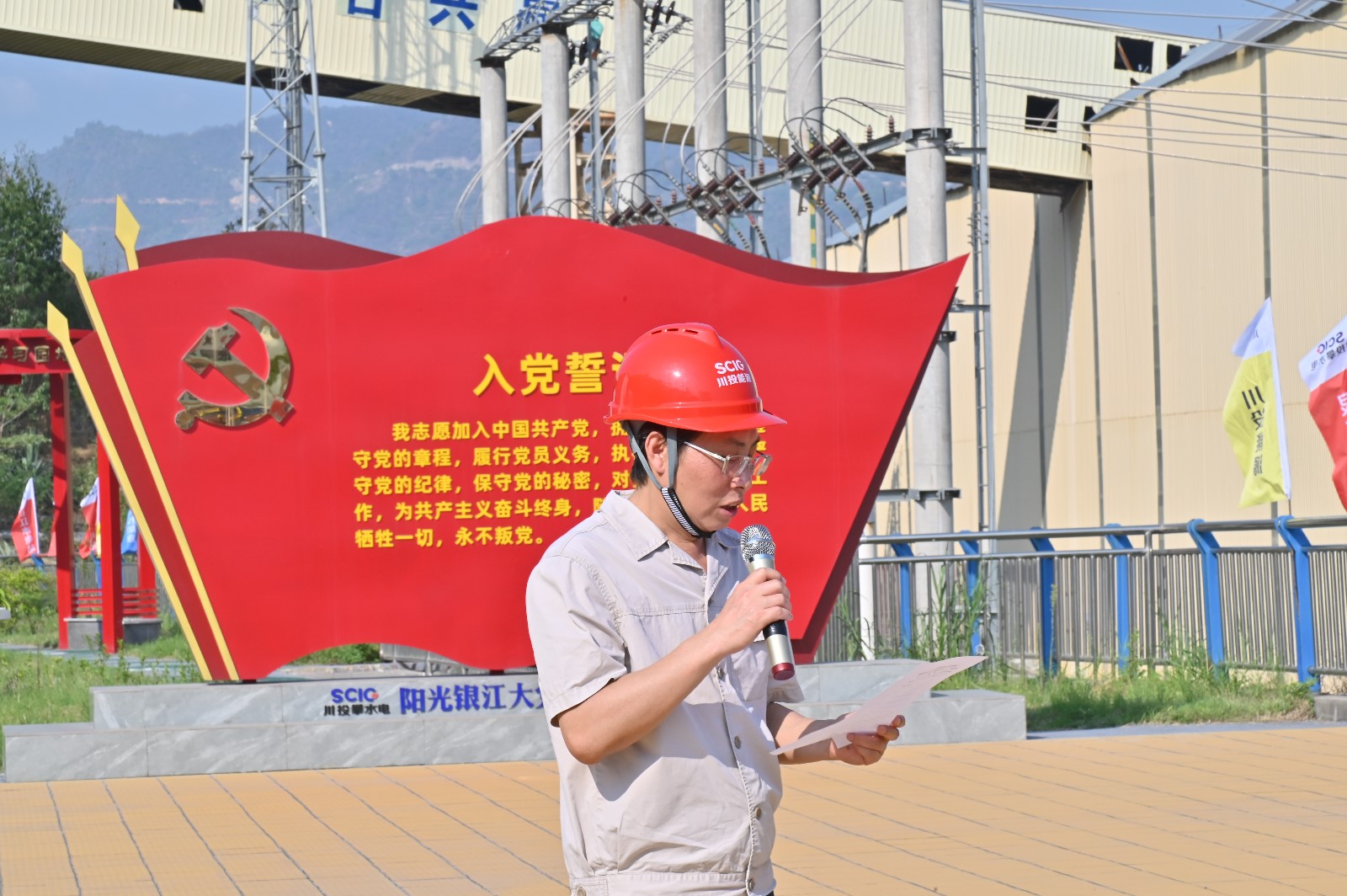 工地现场,,,在烈日的“磨练”下,,,bm11222宝马娱乐网站能源副总司理,,,攀水电公司党总支书记、董事长徐孝刚作发动讲话。。。。。他讲到,,,党的二十大明确提出:要在全社会弘扬劳动精神、斗争精神、贡献精神,,,培育时代新风新貌。。。。。在党102岁生日之际,,,今天我们团结在一起,,,开展主题党日运动,,,传承党自力重生、艰辛创业的红色基因,,,弘扬团结协作、无私贡献的政治品质,,,建设绿色环保银江,,,共建协调文明工地;;;;;希望各人发挥不怕累、不怕脏、不怕苦的劳动精神,,,用勤劳的双手,,,打造漂亮银江,,,展现“颜值继续”。。。。。