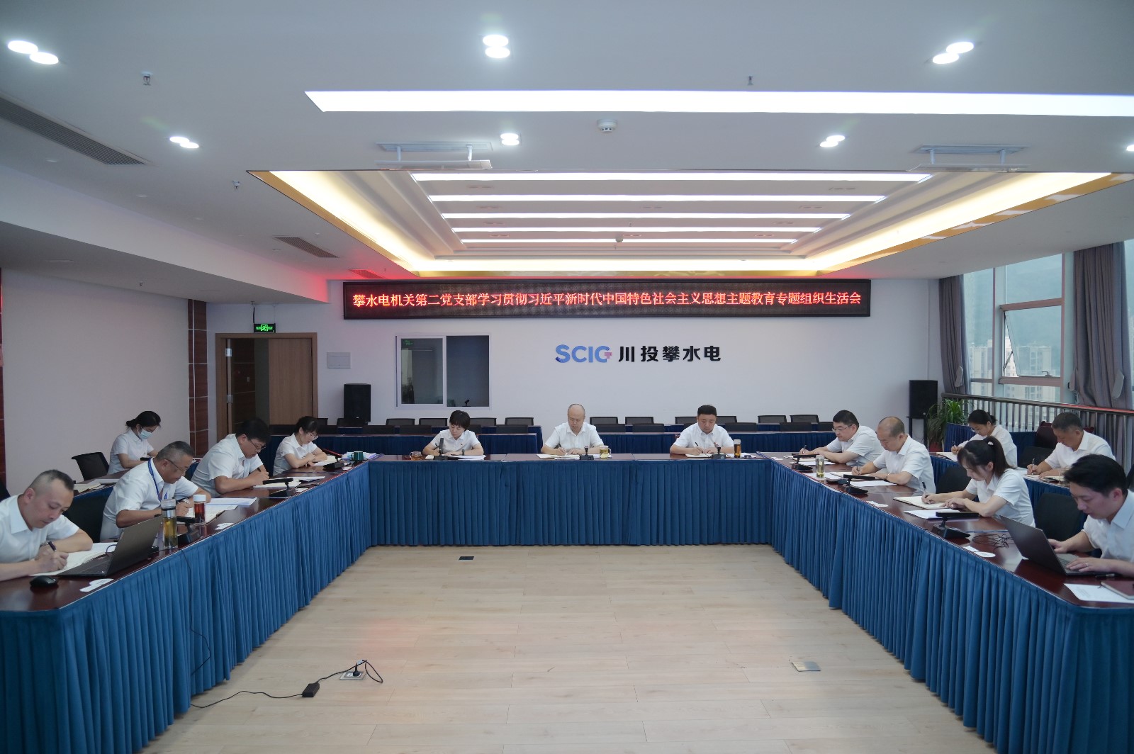 为深入学习贯彻习近平总书记关于开展主题教育的主要讲话和主要指示指挥精神,,,,8月30日,,,,攀水电公司机关第二党支部召开主题教育专题组织生涯会,,,,支部共16名党员加入聚会,,,,公司向导吴巍屿、杨锐、王俊森、唐伽凭证“双重组织生涯”要求以通俗党员身份加入。。。受支部书记委托,,,,聚会由支部委员周弋力主持。。。