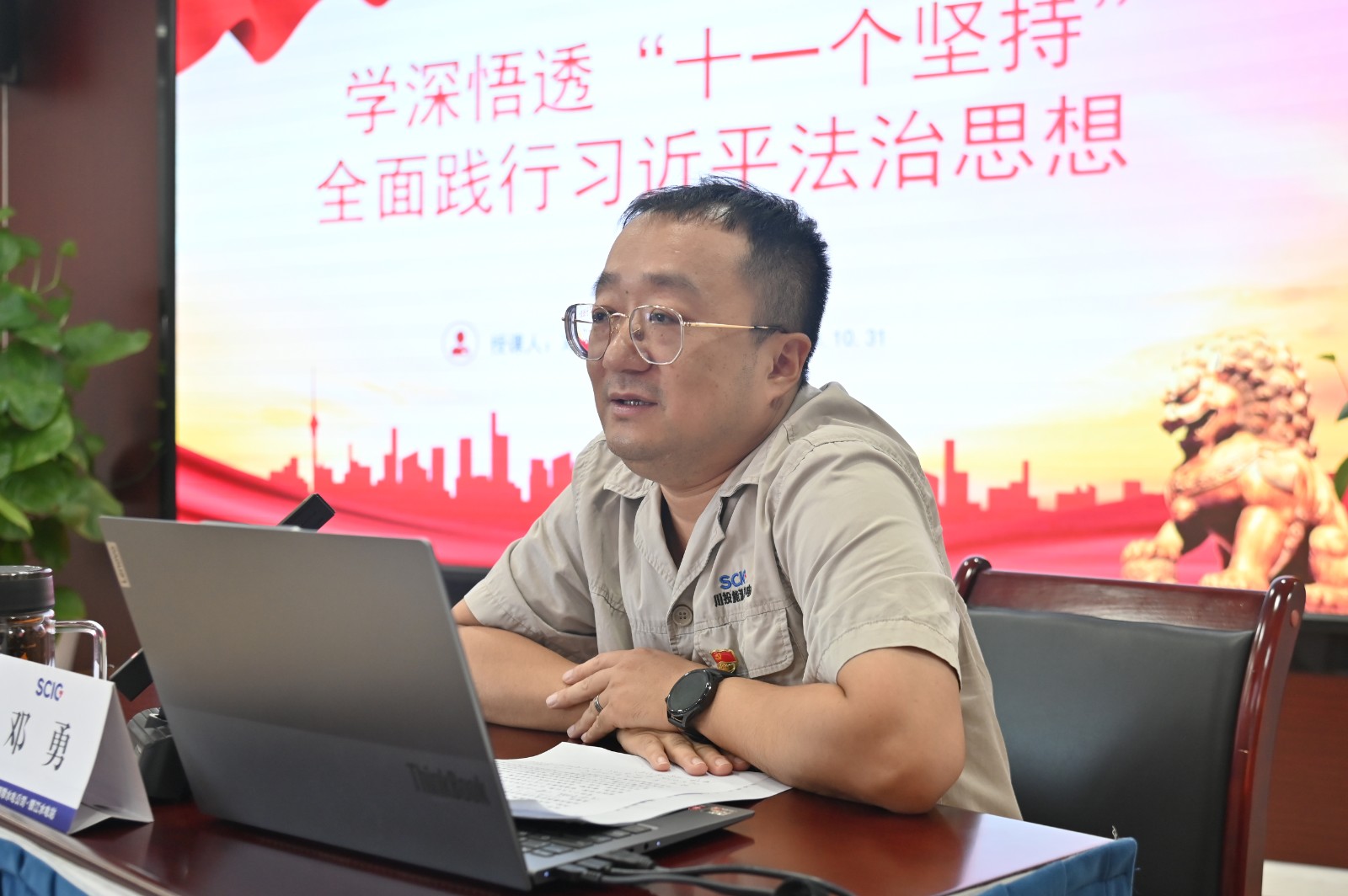 会上,,公司党总支副书记、董事会秘书、工会主席邓勇以“学深悟透‘十一个坚持’,,周全践行习近平法治头脑”为题,,从习近平法治头脑的焦点理念、总体安排、要害行动、主要效果四个方面做了系统叙述,,详细解读了学深悟透“十一个坚持”的内在逻辑和富厚内在,,进一步深化了公司员工对习近平法治头脑的明确和熟悉。。