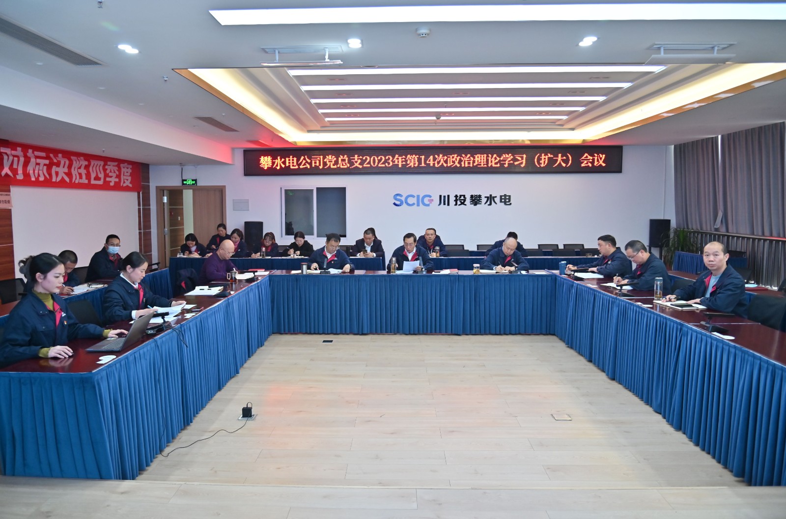 12月23日,,,,,攀水电党总支在2620聚会室召开了2023年第14次政治理论学习(扩大)聚会,,,,,聚会由bm11222宝马娱乐网站能源副总司理、攀水电公司党总支书记、董事长徐孝刚主持,,,,,党总支政治理论学习会成员、各部分认真人、其他党员、统战工具、入党起劲分子共30余人加入学习。。。。。
