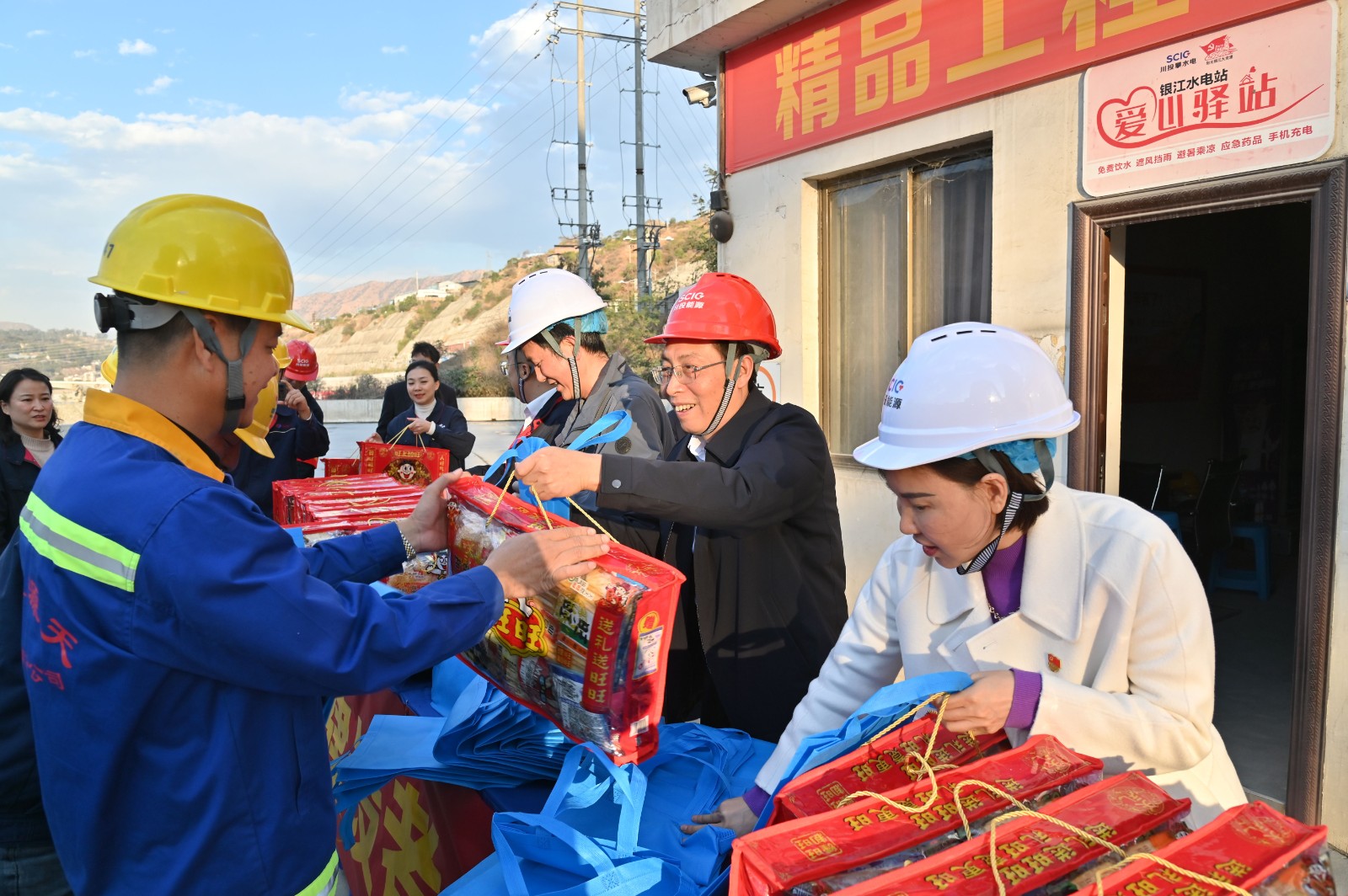 运动首先旅行了公司大党建宣传阵地和银江水电站施工现场。。。。。在爱心驿站,,党员们为来自长江设计院、贵阳院监理部、水电五局项目部、水电七局项目部、广东源天项目部等参建单位的工友发放了康健宣传手册、新春大礼包等慰问物品。。。。。田巨龙感伤到银江水电站工程建设速率之快难以令人想象,,嘱咐工友们一定要珍重身体、注重自身防护,,祝福工友们平平安安、健康健康迎接新年的到来。。。。。