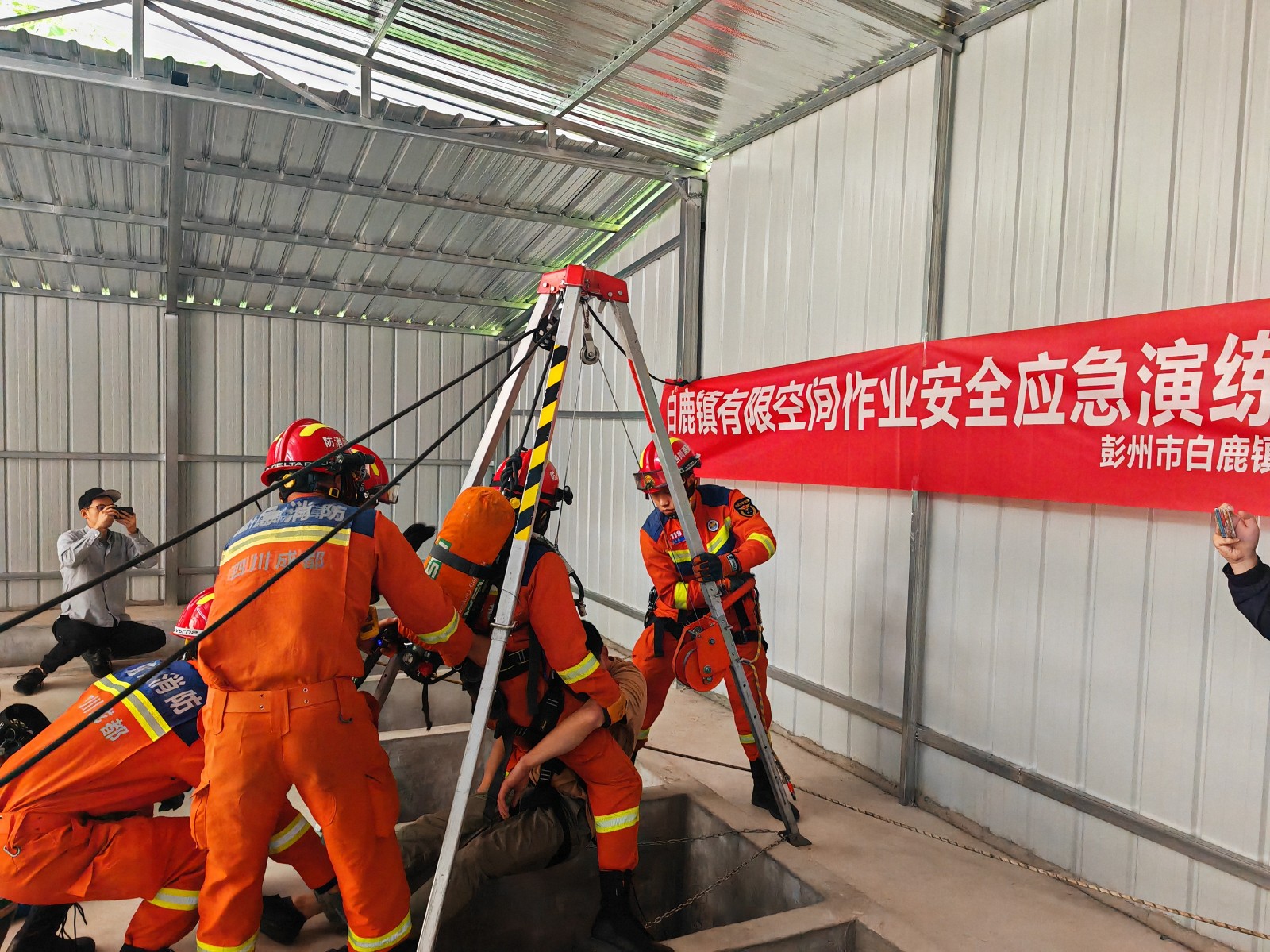 凭证彭州市关于提升企业有限空间作业应抢救援能力的要求,,,5月8日,,,天彭电力派员加入了白鹿镇政府组织开展的有限空间作业清静应急综合演练,,,旨在强化企业认真人和一线员工对有限空间清静危害的提防意识,,,确保在有限空间作业时能够凭证规程准确操作,,,并实时、有用应对突发紧迫情形,,,做到科学施救。。
