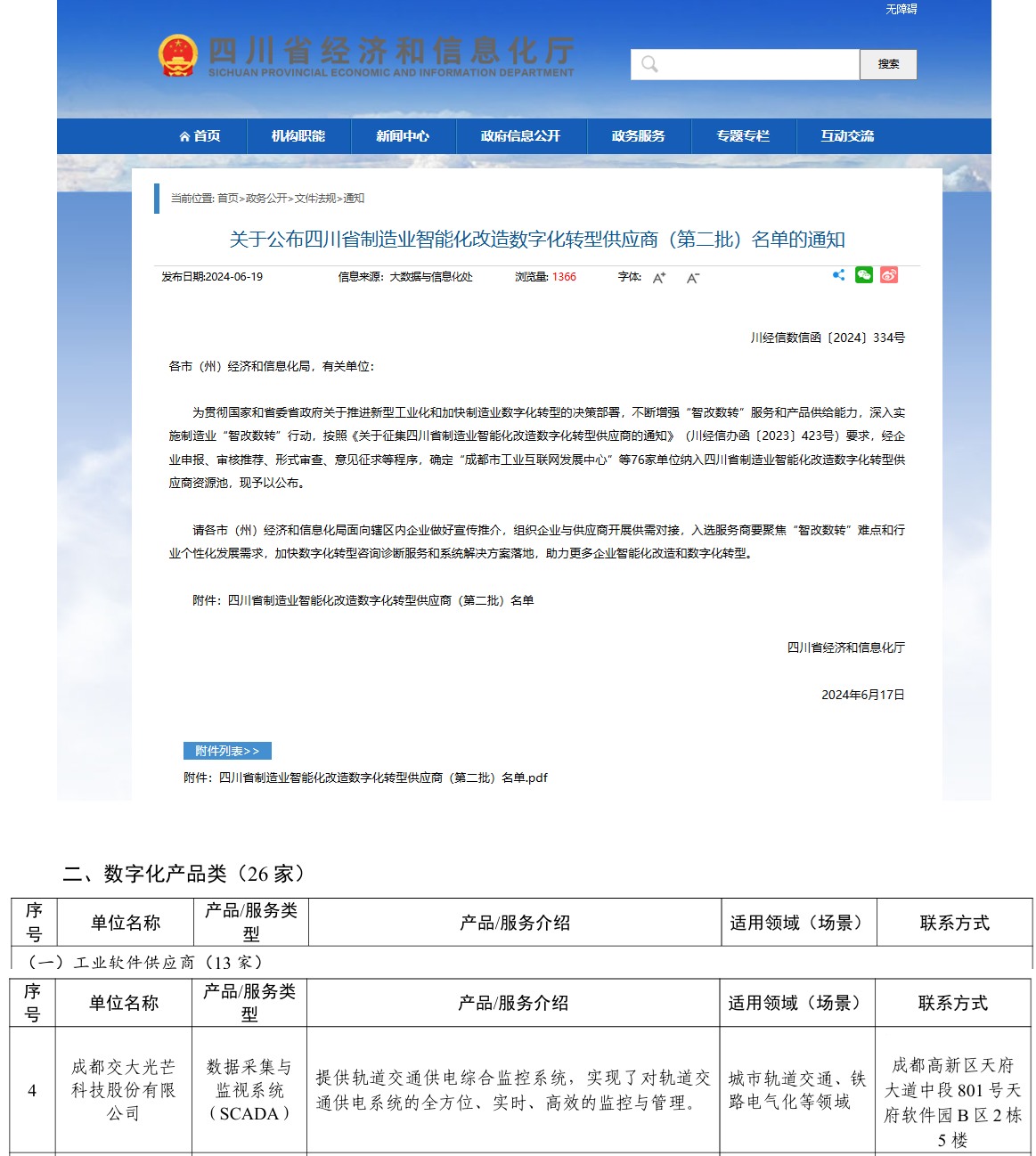 2024年6月19日,,,,四川省经济和信息化厅网站宣布四川省制造业智能化刷新数字化转型供应商(第二批)名单,,,,交大光线作为数字化产品类工业软件供应商入选四川省制造业智能化刷新数字化转型供应商资源池。。。。。