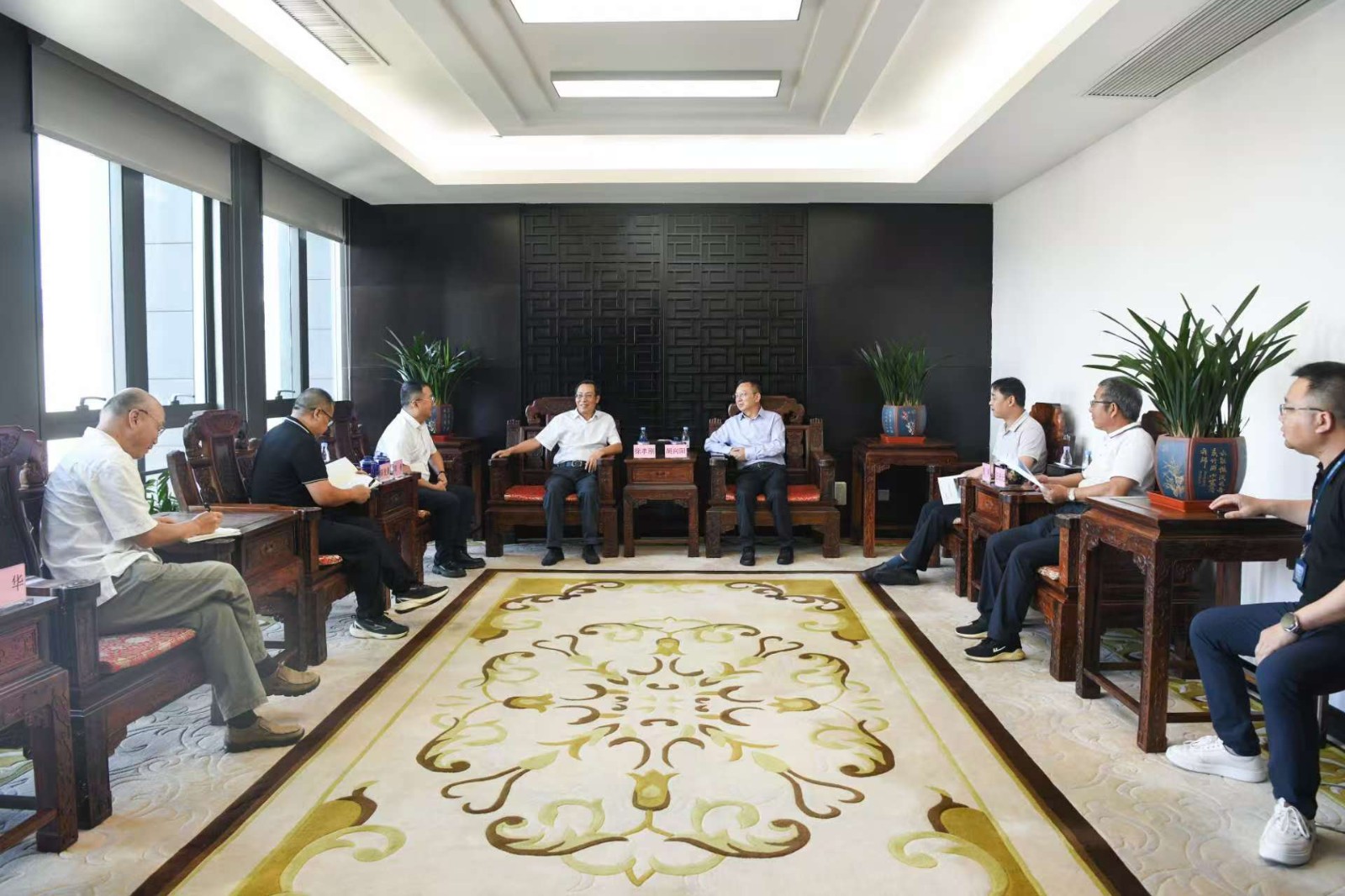 8月20日下昼,,bm11222宝马娱乐网站能源副总司理、攀水电公司党总支书记、董事长徐孝刚在武汉拜会长江设计集团党委书记、董事长胡向阳,,汇报银江水电站工程建设情形。。。。。长江设计公司总司理、攀水电公司董事敖昕,,长江设计公司高级咨询师、银江项目勘探设计总工汪庆元,,攀水电公司党总支副书记、董事会秘书、工会主席邓勇,,相关部分职员加入会见。。。。。