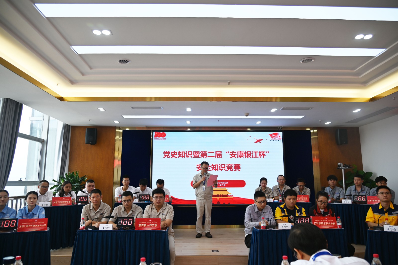 6月30日上午,, ,在中国共产党建设100周年华诞前夕,, ,也是第20个清静生产月运动圆满收官的日子里,, ,攀水电公司党总支在公司2620聚会室开展党史知识暨第二届“安康银江杯”清静知识竞赛运动,, ,来自“阳光银江大党建”六个联建支部和两个机关支部所有组队参赛,, ,公司及各参建单位向导、全体党员职工、联建支部代表共60余人加入运动。。。。