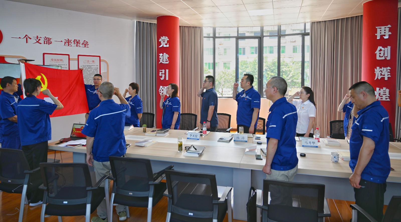 最后,,全体党员还整体过了政治生日,,面临鲜红的党旗,,重温了入党誓词。。。。