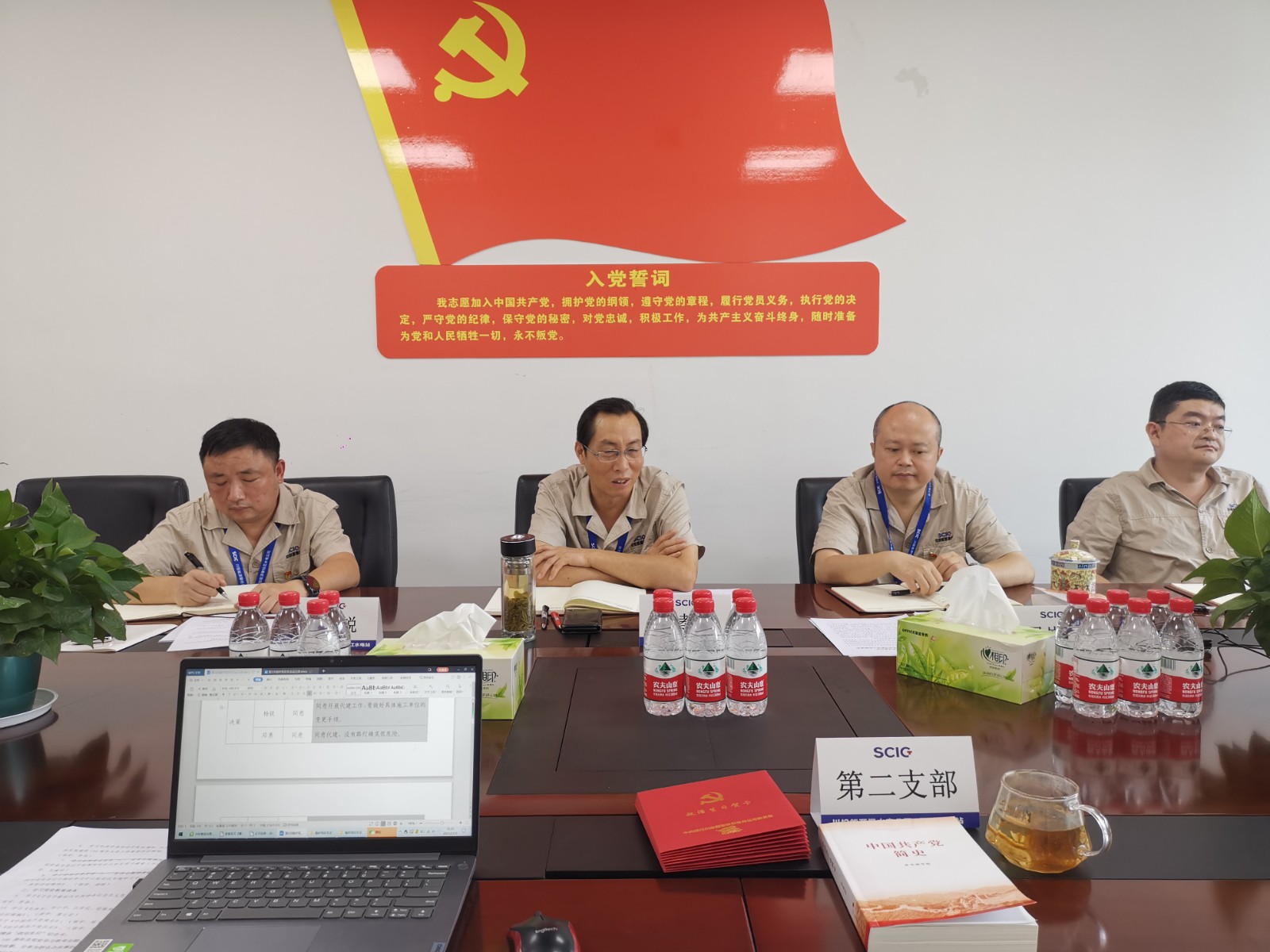 7月31日,,,为进一步增强支部凝聚力、战斗力、向心力,,,一直强化党员党性、党纪、党规意识,,,攀水电公司机关第二党支部开展了“过政治生日、忆入党初心”主题党日运动。。bm11222宝马娱乐网站能源副总司理、攀水电公司党总支书记、董事长徐孝刚到会指导点评。。公司党总支委员、副总司理吴巍屿,,,党总支委员、纪检小组长杨锐落实“双重组织生涯”要求,,,以通俗党员身份加入了主题党日运动。。