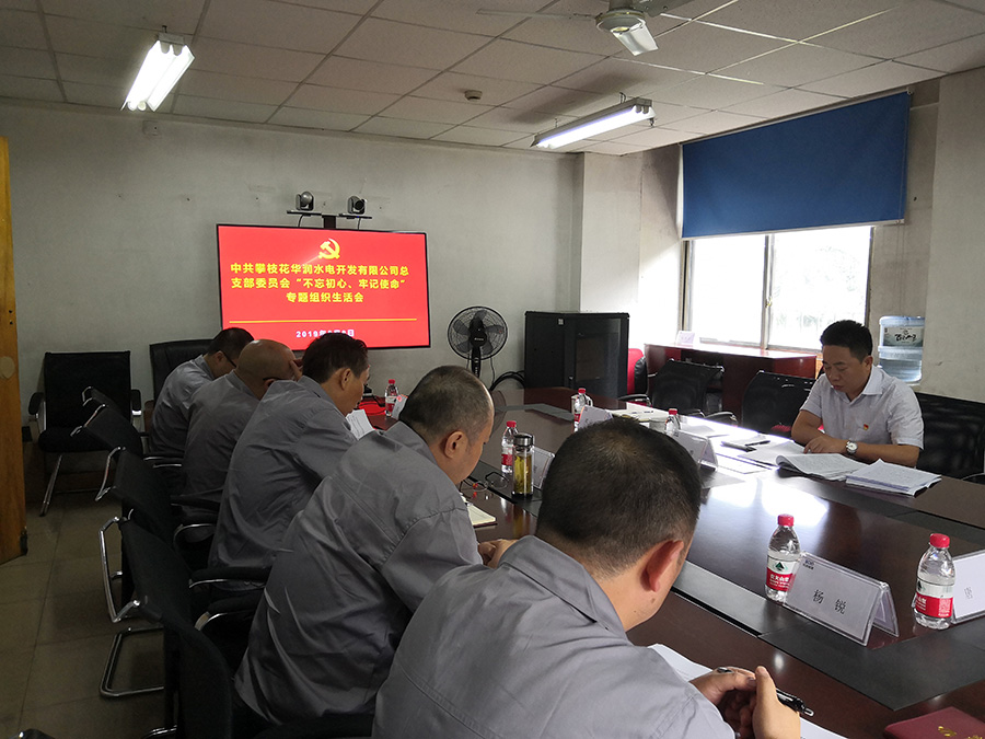 凭证中央、省委、省国资委党委、集团公司党委和bm11222宝马娱乐网站能源党委关于开展“不忘初心、切记使命”主题教育有关要求,,9月8日,,攀枝花华润水电开发有限公司党总支召开专题组织生涯会,,bm11222宝马娱乐网站能源副总司理肖长青到会指导,,攀枝花水电公司党总支书记、董事长徐孝刚主持聚会,,党总支班子成员加入聚会。。